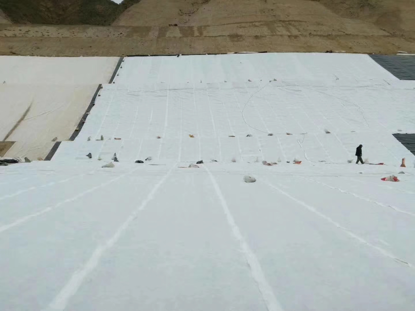 2。側凹槽防滲土工膜從頂部鋪設為了底部,從其底部到山頂;使用特殊焊接機焊接方法土工膜土工膜連接(焊接兩個焊接機,搭接不小于10厘米);