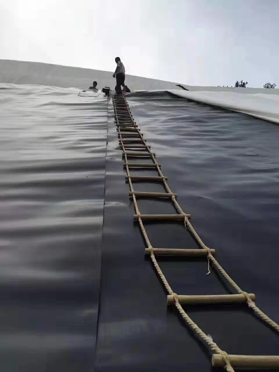 4、對于HDPE土工膜的錨固,還要注意在錨固溝頂部,應按設計要求預留一定的防滲膜,以備局部下沉拉伸。